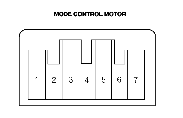 4. Measure the resistance between the No. 5 and No. 7 terminals of the mode control motor. It should be between 4.2 and 7.8 kOhms.