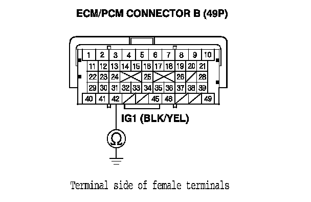 33. Check for continuity between ECM/PCM connector terminal A49 and body ground.