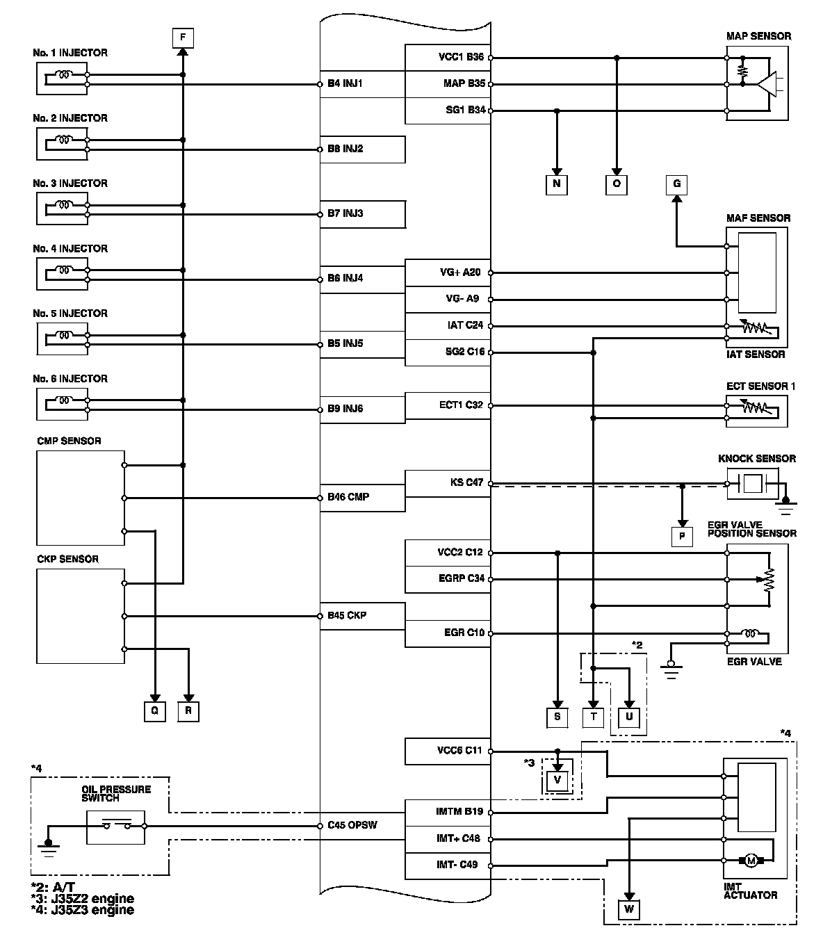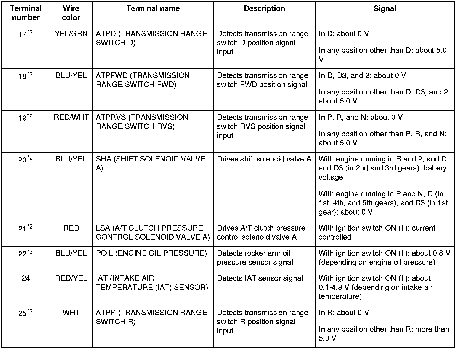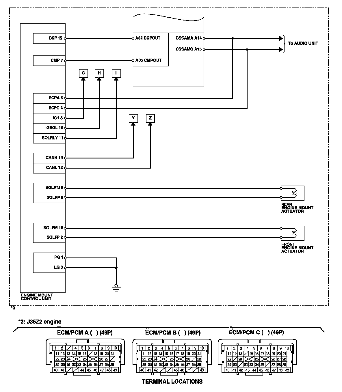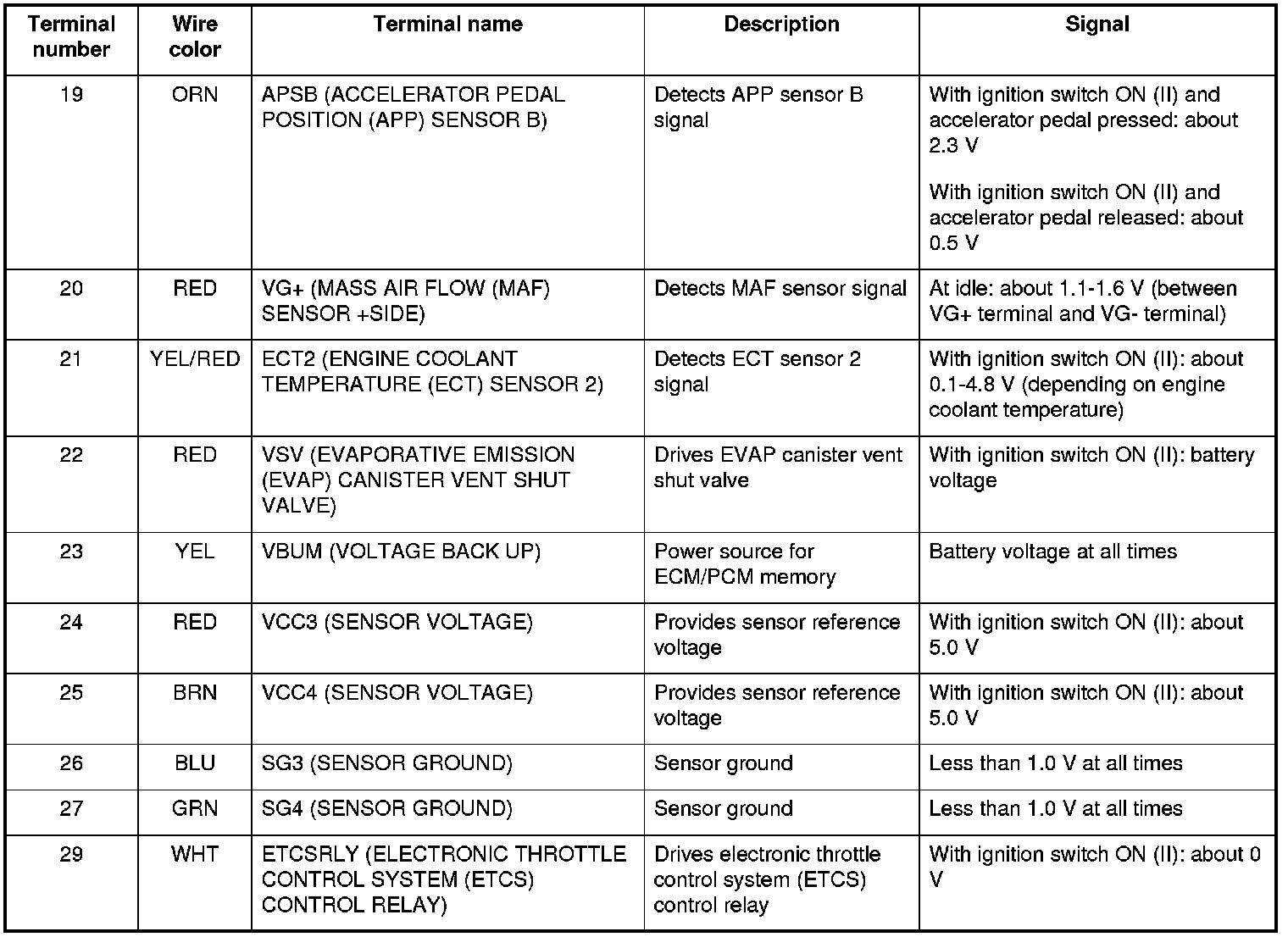 ECM/PCM Inputs and Outputs at Connector A (square) (49P)