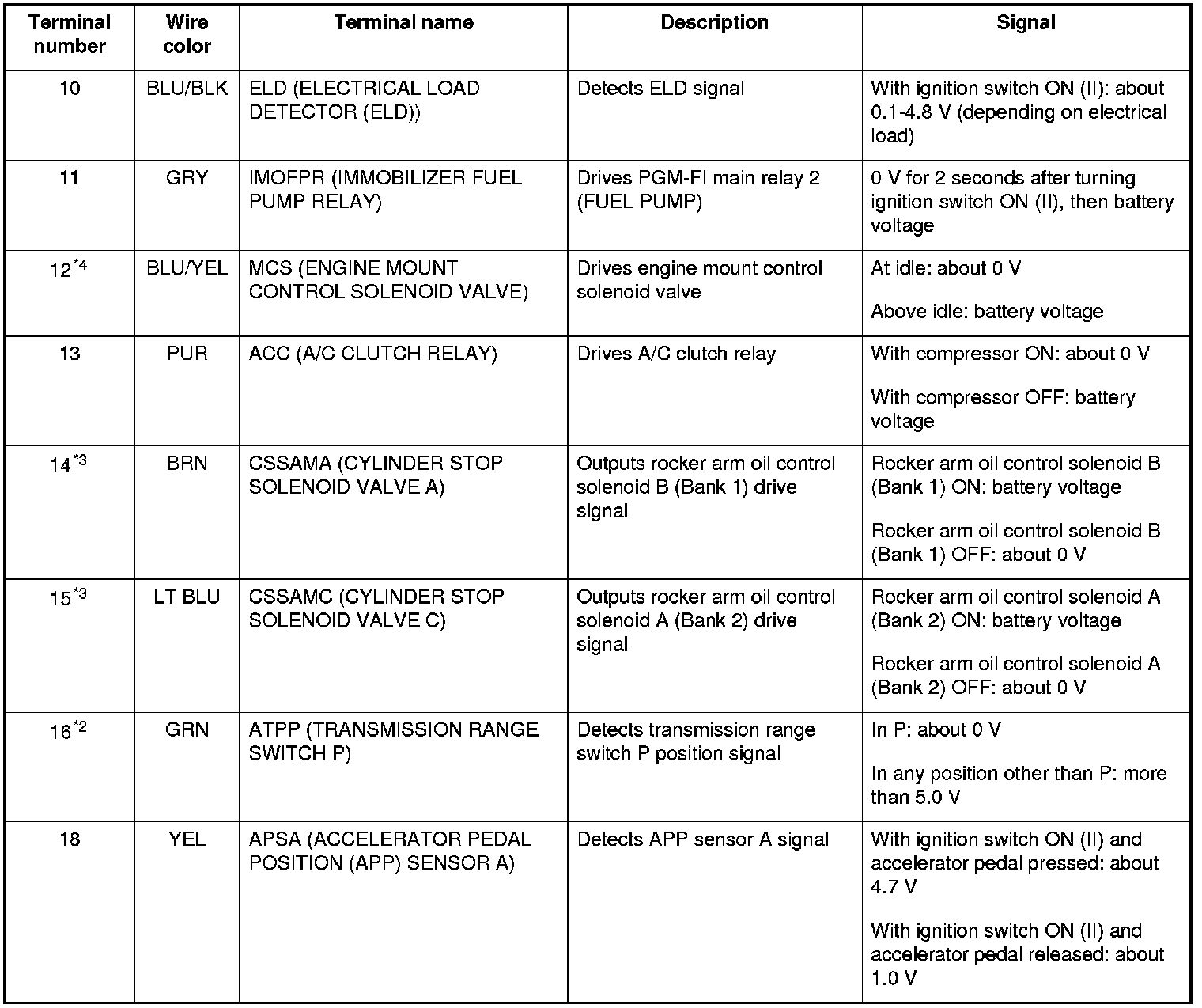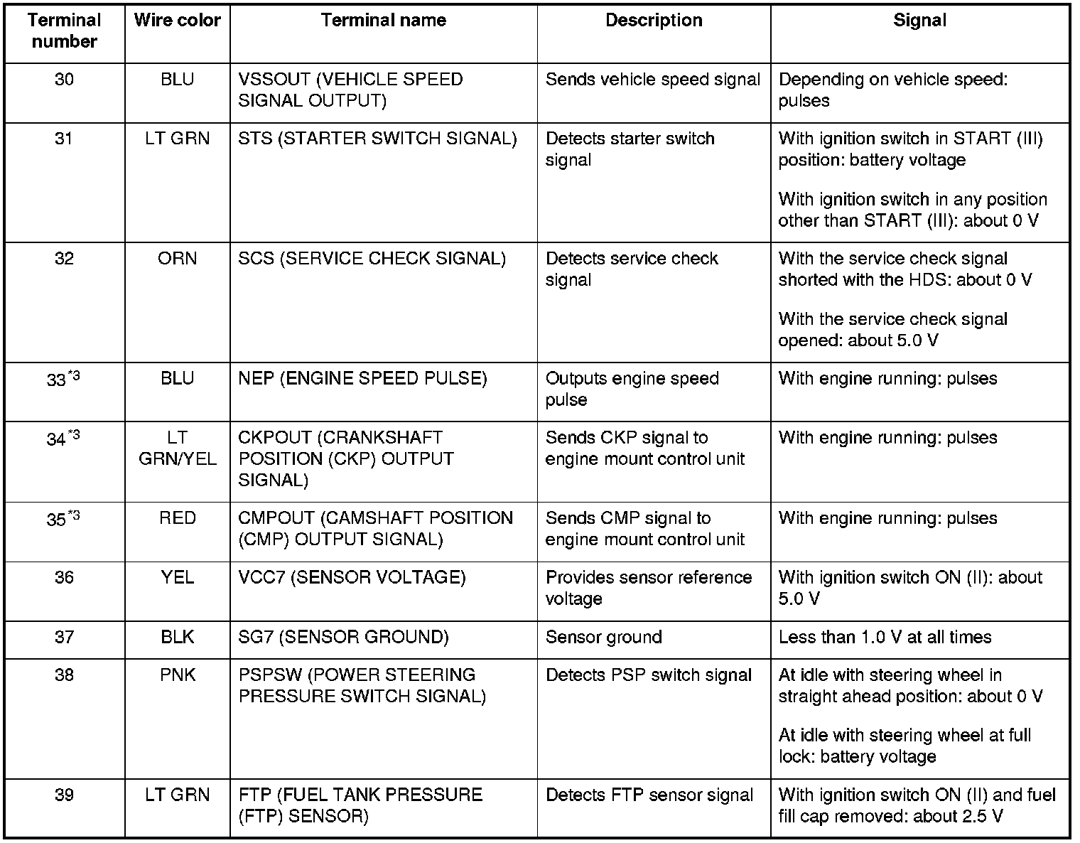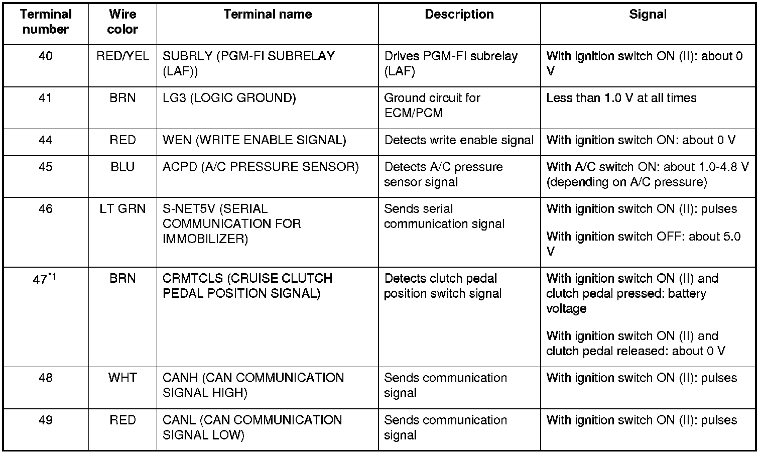 After the ignition switch is turned to LOCK (0), the ECM/PCM stays on (about 40 minutes). If the ECM/PCM connector is disconnected during this time, the ECM/PCM may be damaged. To cancel this mode, disconnect the negative cable from the battery or jump the SCS line with the HDS after the ignition switch is turned to LOCK (0).