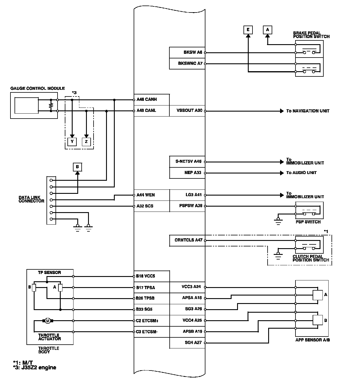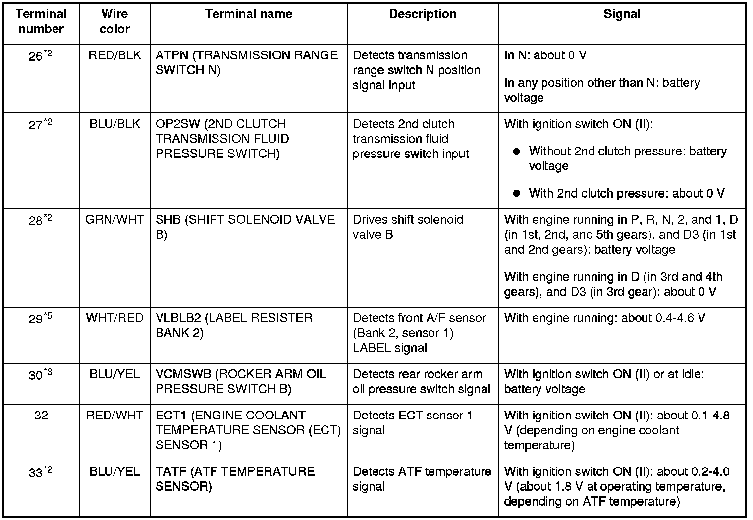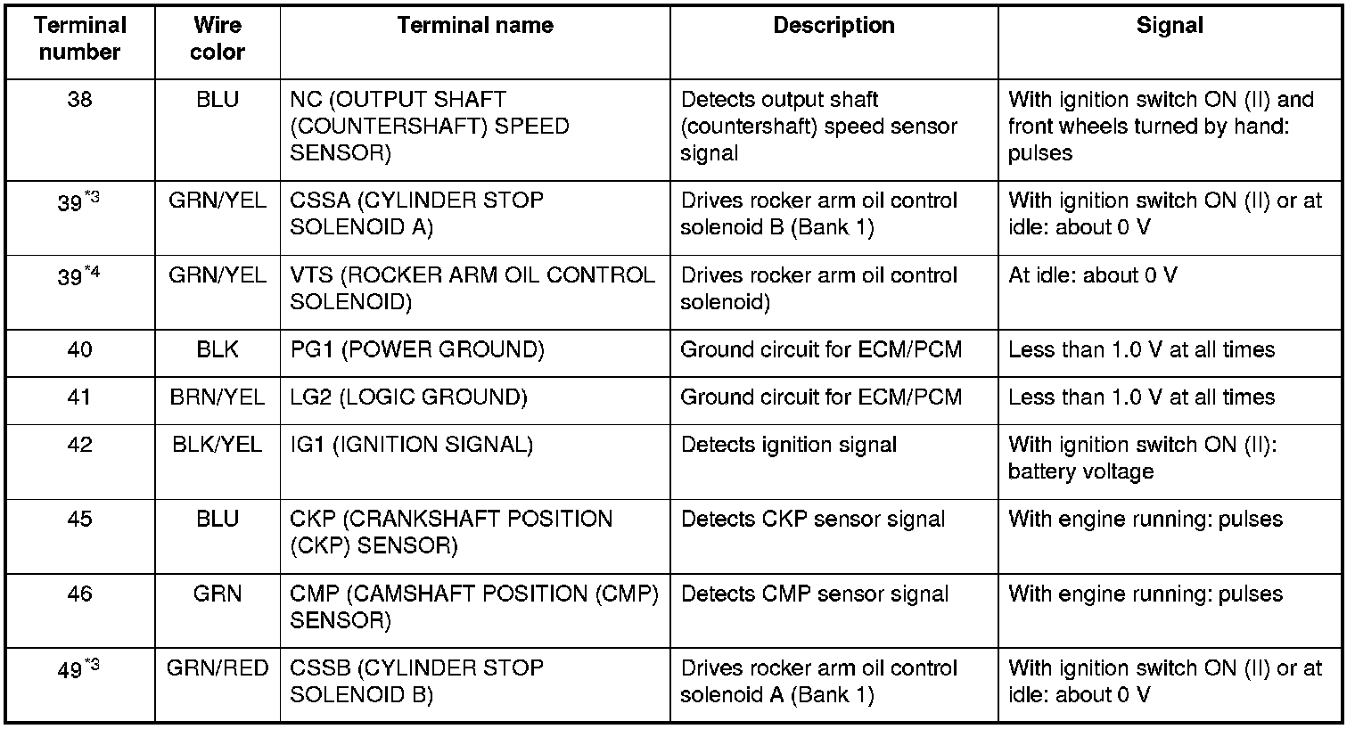 After the ignition switch is turned to LOCK (0), the ECM/PCM stays on (about 40 minutes). If the ECM/PCM connector is disconnected during this time, the ECM/PCM may be damaged. To cancel this mode, disconnect the negative cable from the battery or jump the SCS line with the HDS after the ignition switch is turned to LOCK (0).
