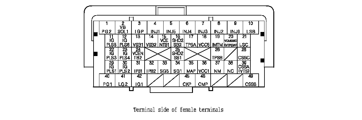 ECM/PCM Inputs and Outputs at Connector B (triangle) (49P)