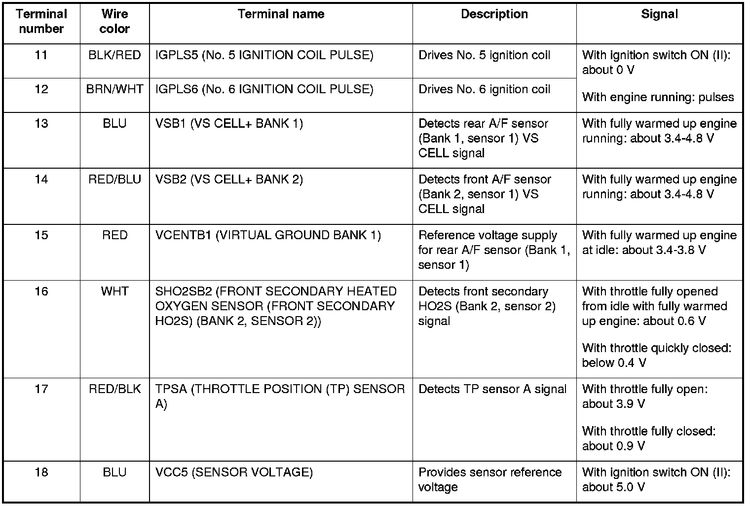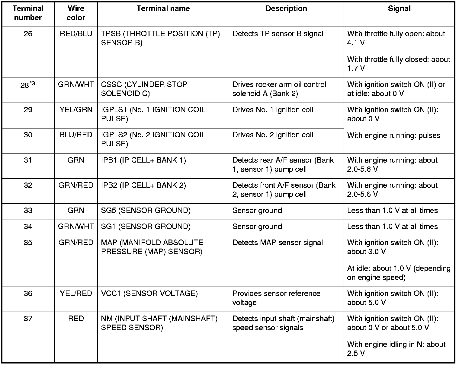 When an abnormality occurs in the signal from a sensor or from another control unit, the ECM/PCM ignores that signal and substitutes a pre-programmed value for them that allows the engine to continue running. This causes a DTC to be stored and the MIL to come on.