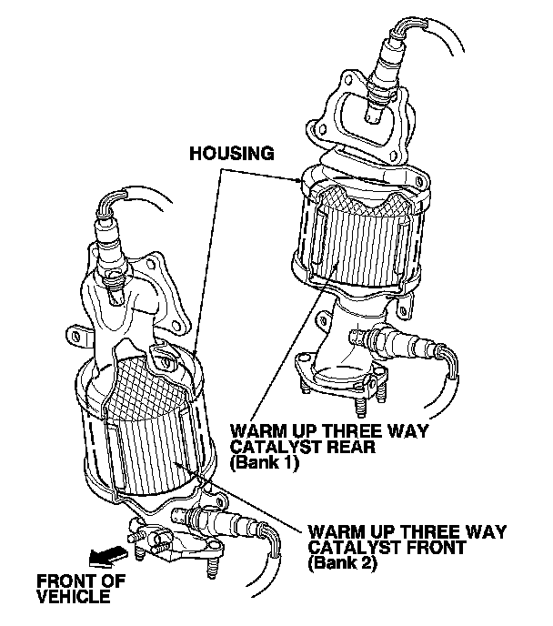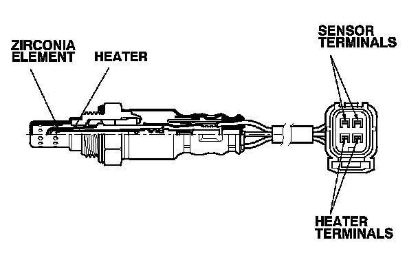 The secondary HO2S detects the oxygen content in the exhaust gas downstream of the warm up three way catalytic converter (WU-TWC), and sends signals to the ECM/PCM. To stabilize its output, the sensor has an internal heater. The ECM/PCM compares the HO2S output with the A/F sensor output to determine catalyst efficiency. The secondary HO2S is on the WU-TWC.