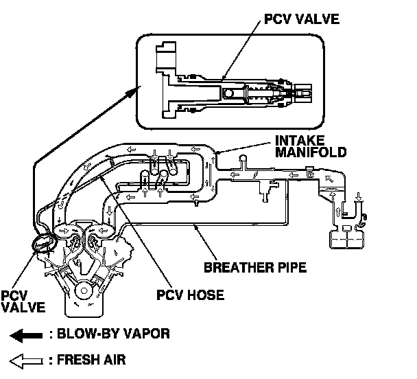 The PCV valve prevents blow-by gasses from escaping into the atmosphere by venting them into the intake manifold.