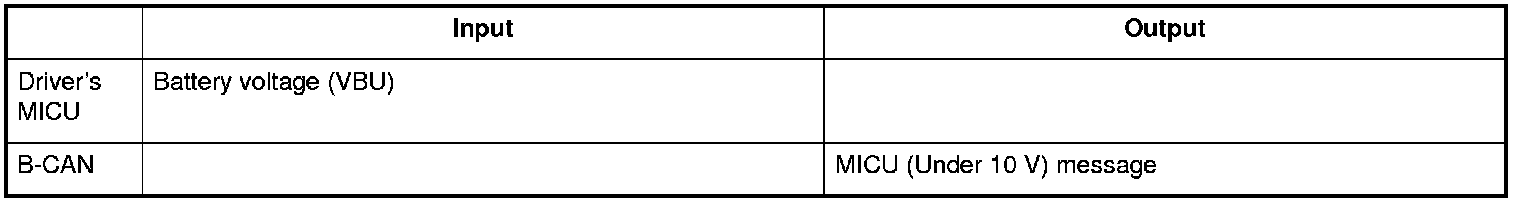 The driver's MICU monitors the power supply voltage (back-up voltage). If the voltage goes below 10 V, the driver's MICU will not store a DTC.