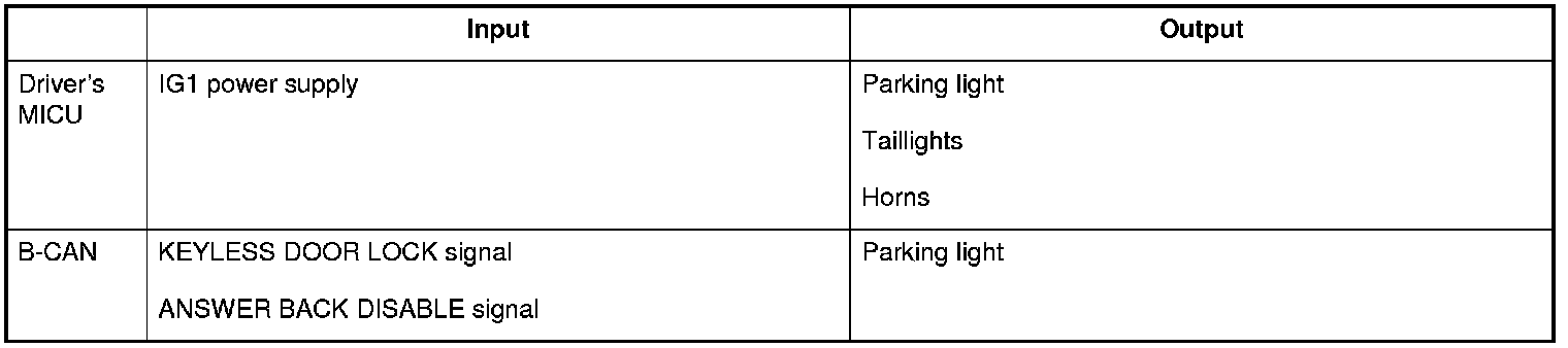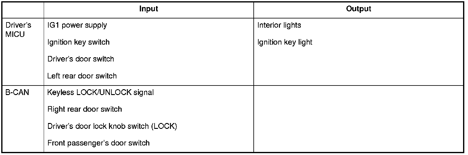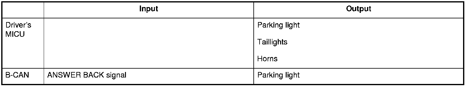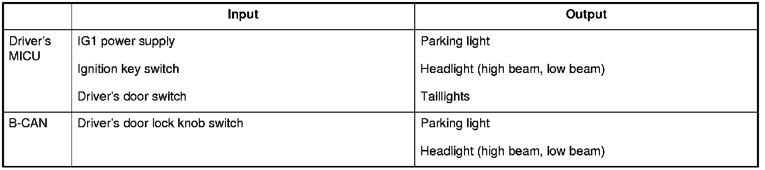 The driver's MICU control of the lighting system and horns is based on input signals of each switch and the B-CAN signals.