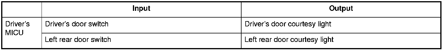 The driver's MICU control of the driver's and left rear door courtesy lights is based on input signal from the driver's and left rear door switches.