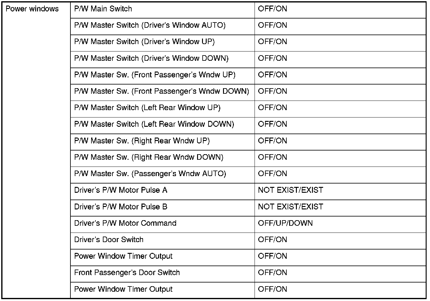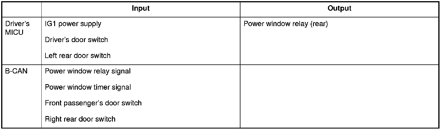 The driver's MICU control of the power windows is based on input signals from each switch.