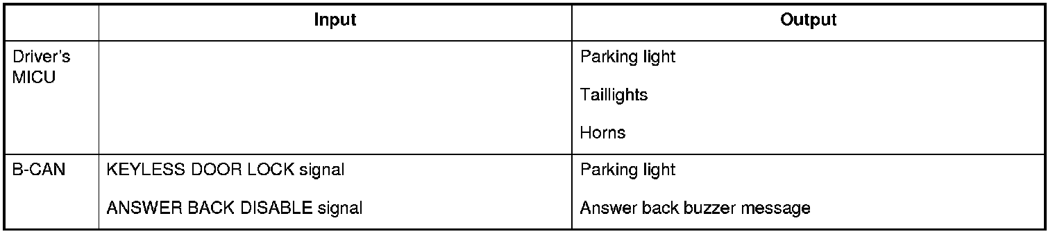 The passenger's MICU control of the keyless buzzer is based on input from the answer back signals.