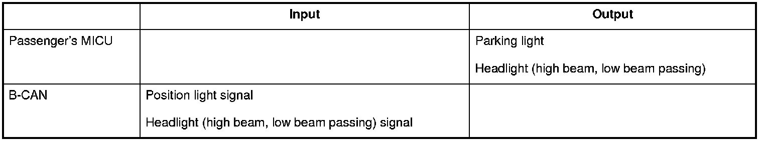 The passenger's MICU control of the front passenger's side headlight, and parking lights is based on input signals from the driver's MICU.
