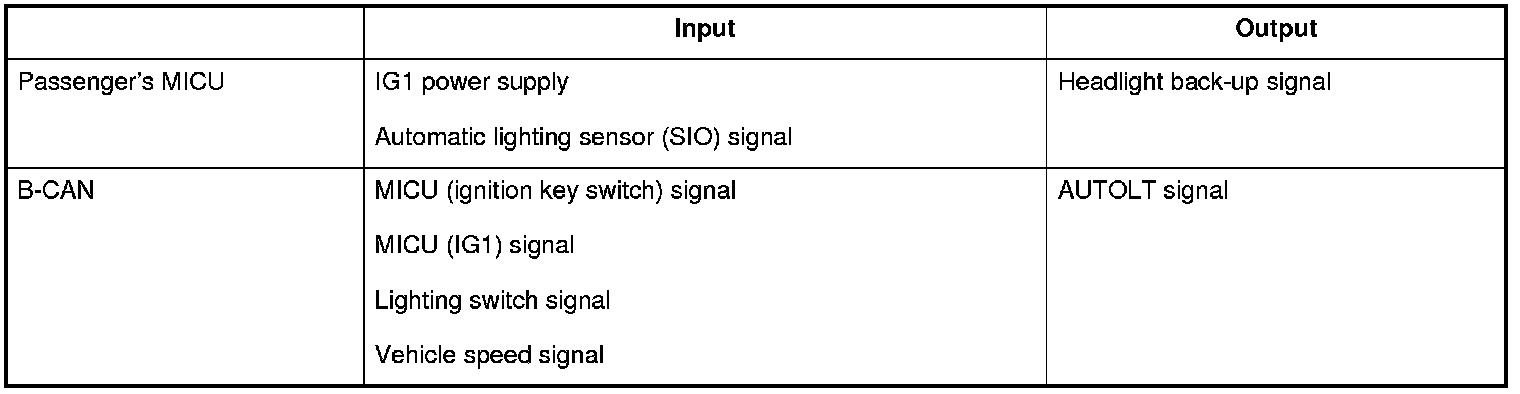 The passenger's MICU control of the headlights and the parking lights is based on input signals from the automatic lighting sensor.