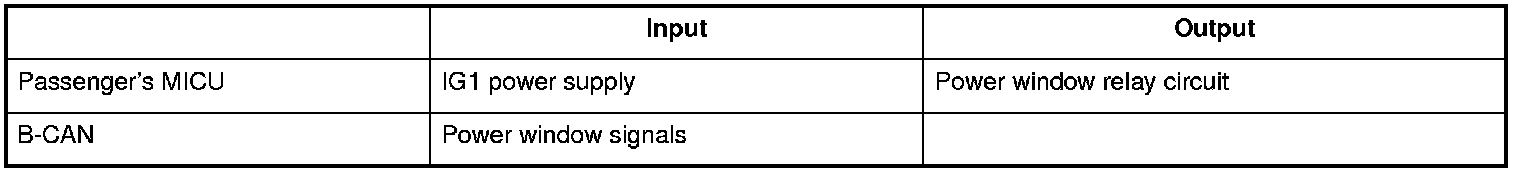The passenger's MICU control of the power window relay circuit in the passenger's under-dash fuse/relay box is based on input signals from the power window switches.