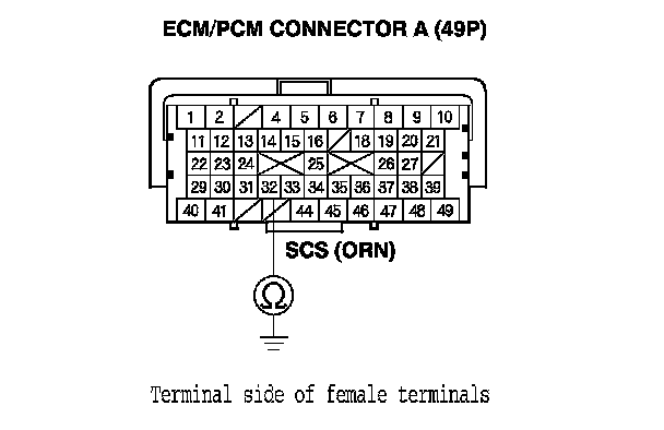 7. Check for continuity between ECM/PCM connector terminal A32 and body ground.
