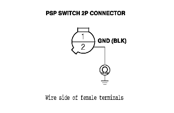 13. Check for continuity between PSP switch 2P connector terminal No. 1 and body ground.