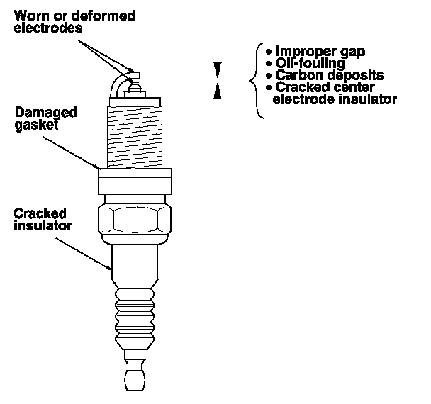 1. Remove the spark plugs, then inspect the electrodes and the ceramic insulator.