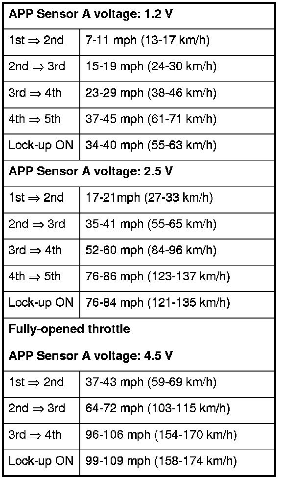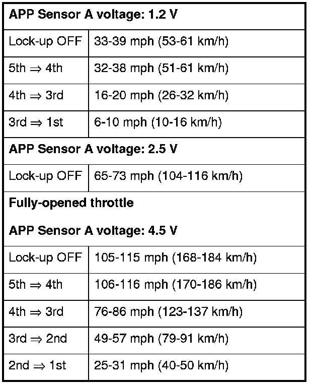 9. Monitor the HDS, and accelerate quickly until the APP Sensor A reads 1.2 V. Maintain a steady throttle until the transmission shifts to 5th gear, then slow the vehicle and come to a stop.