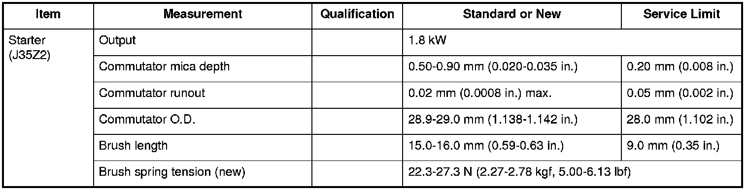 Starter (J35Z2) Specifications (J35Z2 Engine)