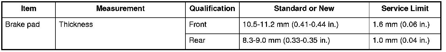 Brake Pad Specifications
