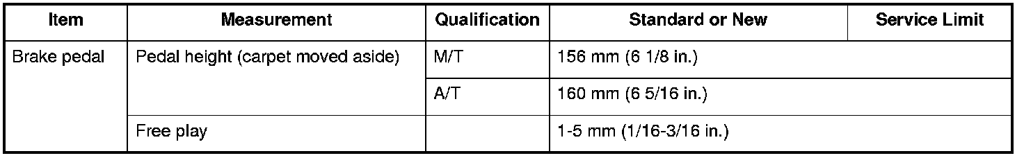 Brake Pedal Specifications
