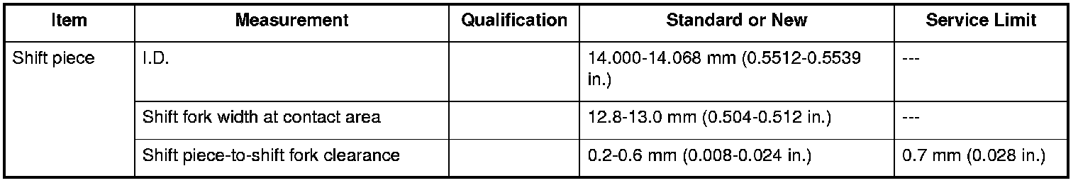 Shift Piece Specifications (M/T)
