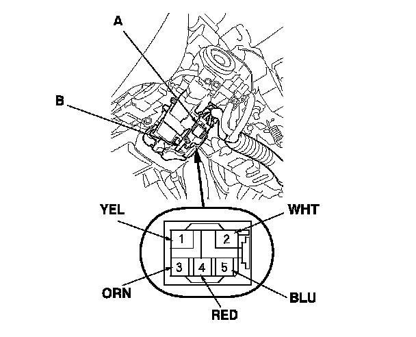 3. Disconnect the 5P connector (A) from the ignition switch (B).