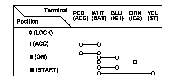 5. If the continuity is not as specified, replace the ignition switch. Ignition Switch Replacement