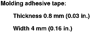 14. Attach the molding (A) with adhesive tape (B) to the upper edge of the windshield (C). Be careful not to touch the windshield where adhesive will be applied.