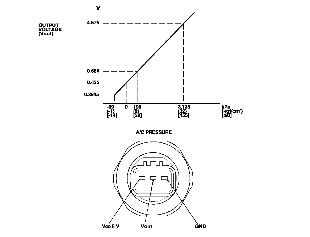 The response of the A/C pressure sensor is shown in the graph.
