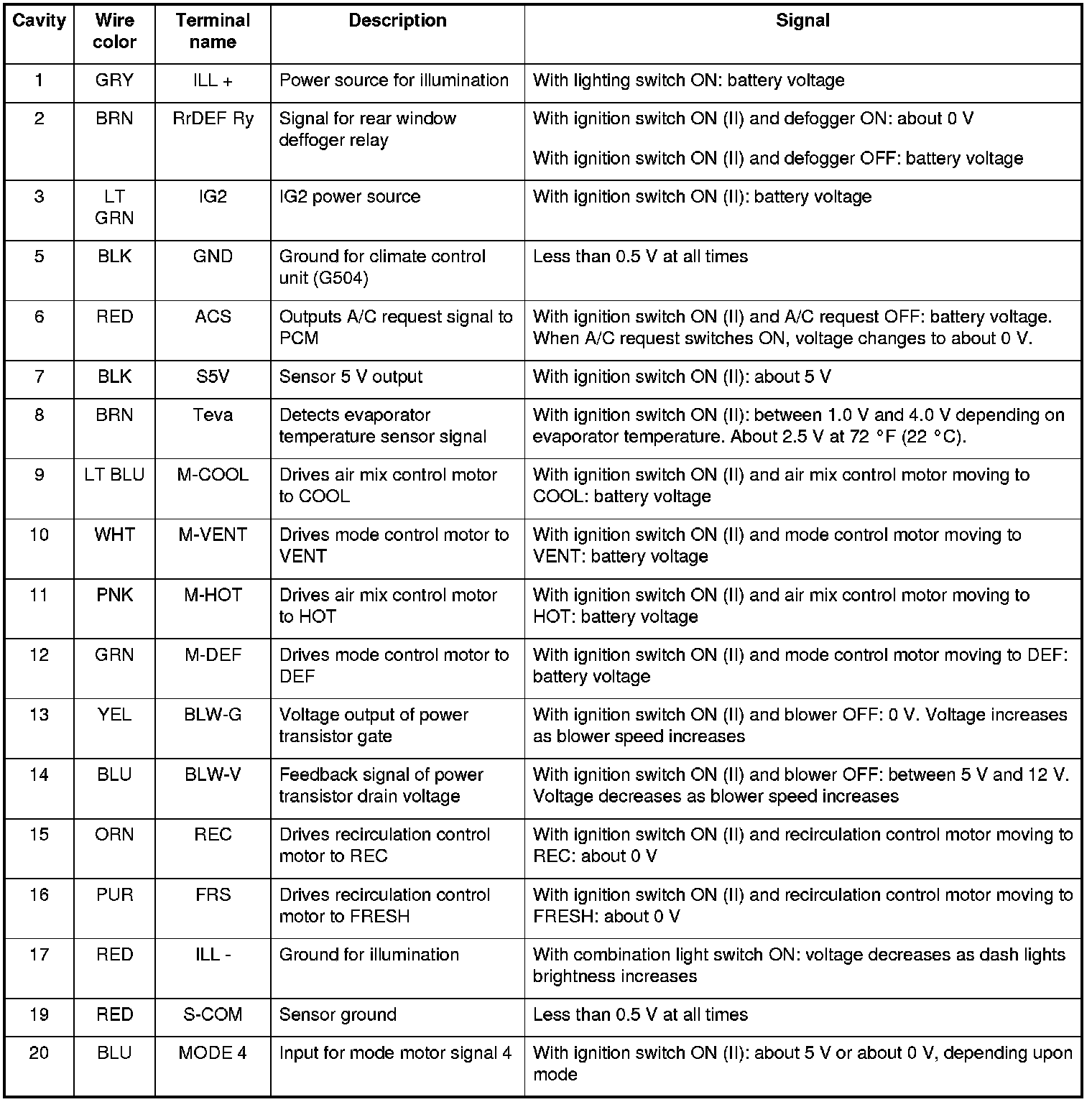 Climate Control Unit Inputs and Outputs