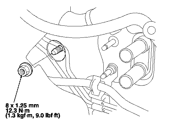 7. Remove the mounting nut from the heater unit. Take care not to damage or bend the fuel lines or brake lines, etc.