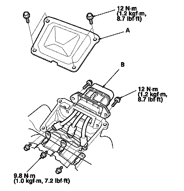2. Remove the terminal cover (A), and the shielded male connector (B).