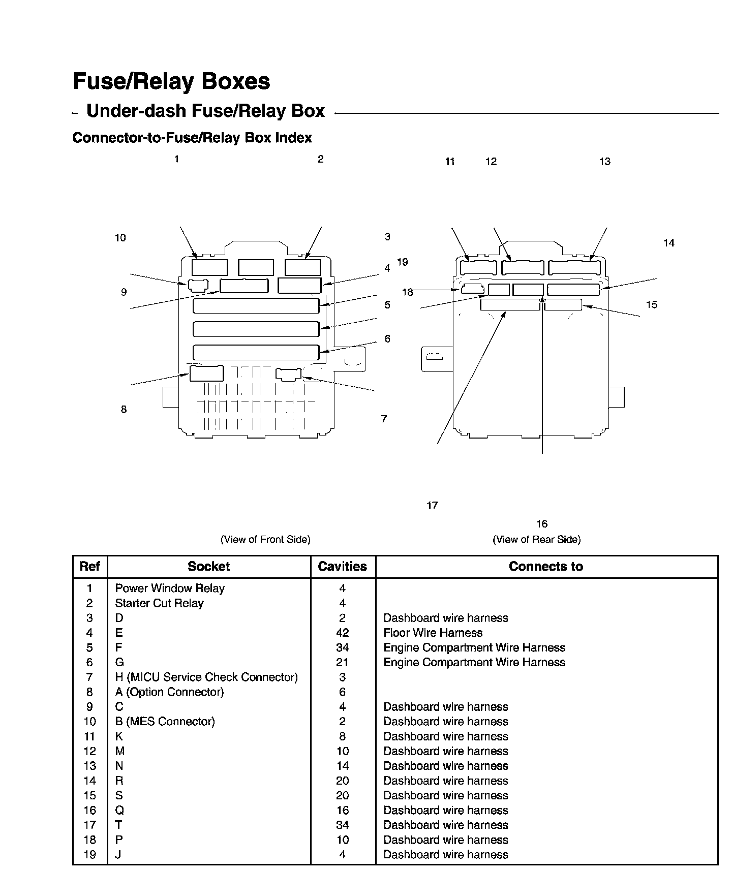 Under-Dash Fuse/Relay Box - Connector-to-Fuse/Relay Box Index