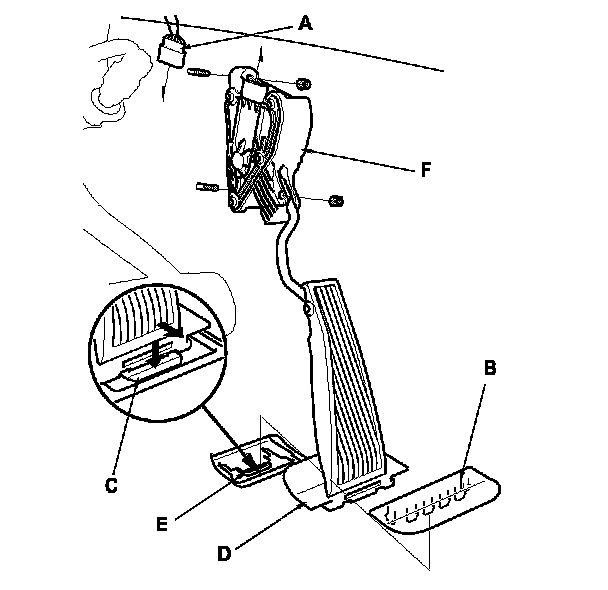 4. Remove the accelerator pedal module (F).
