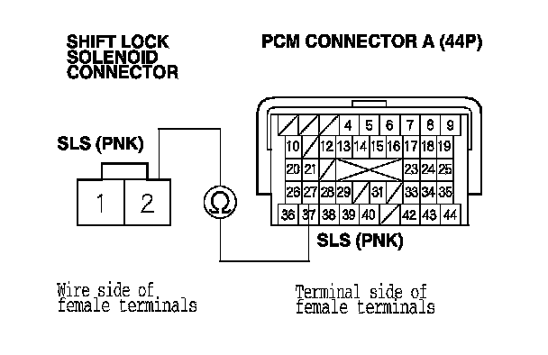 NO - Repair open in the wire between PCM connector terminal A27 and the shift lock solenoid connector.