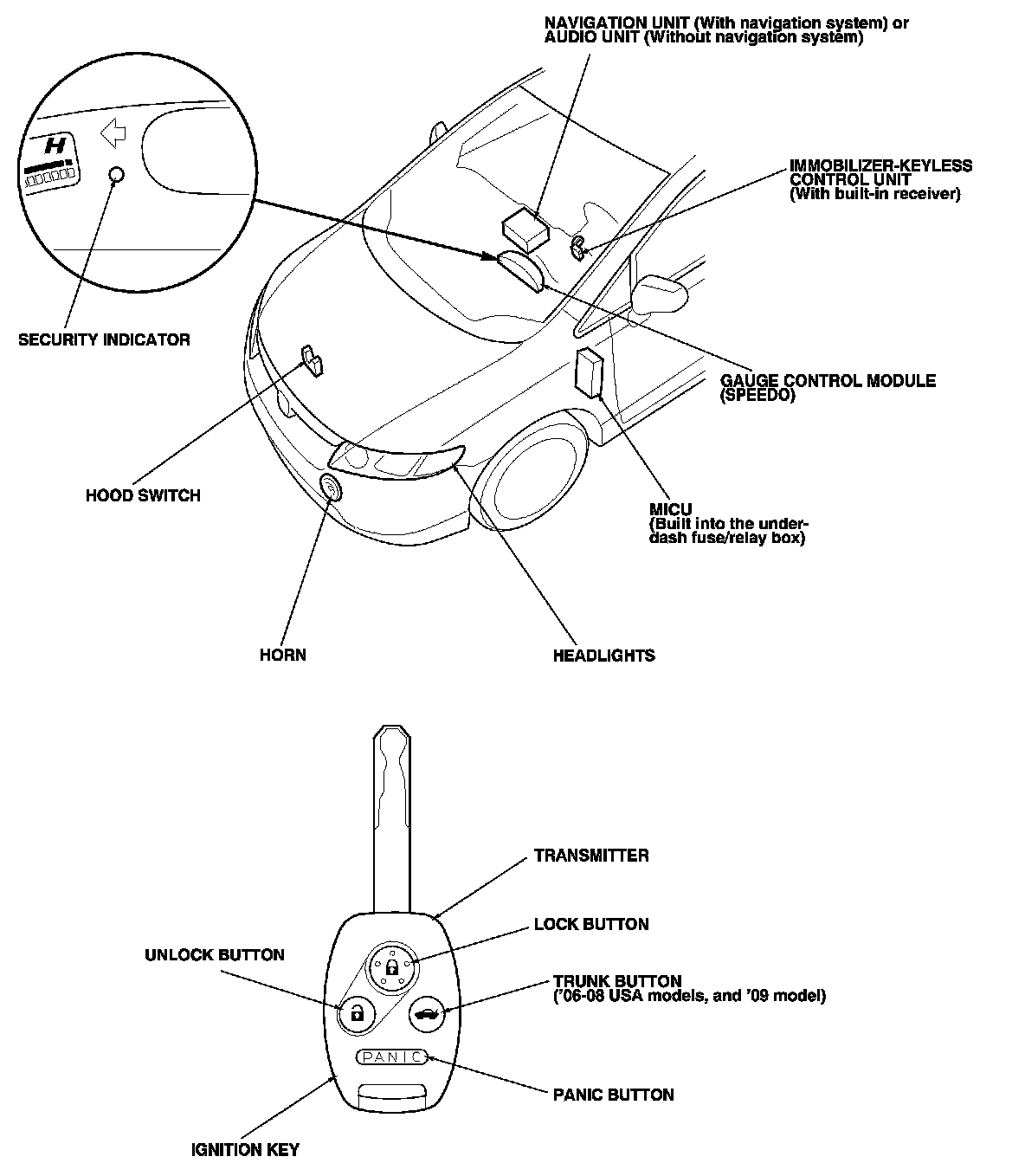 Keyless/Power Door Locks/Security System Component Location Index