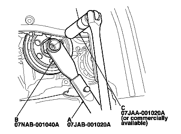 Tighten the crankshaft pulley bolt to 37 N-m (3.8 kgf-m, 27 lbf-ft)