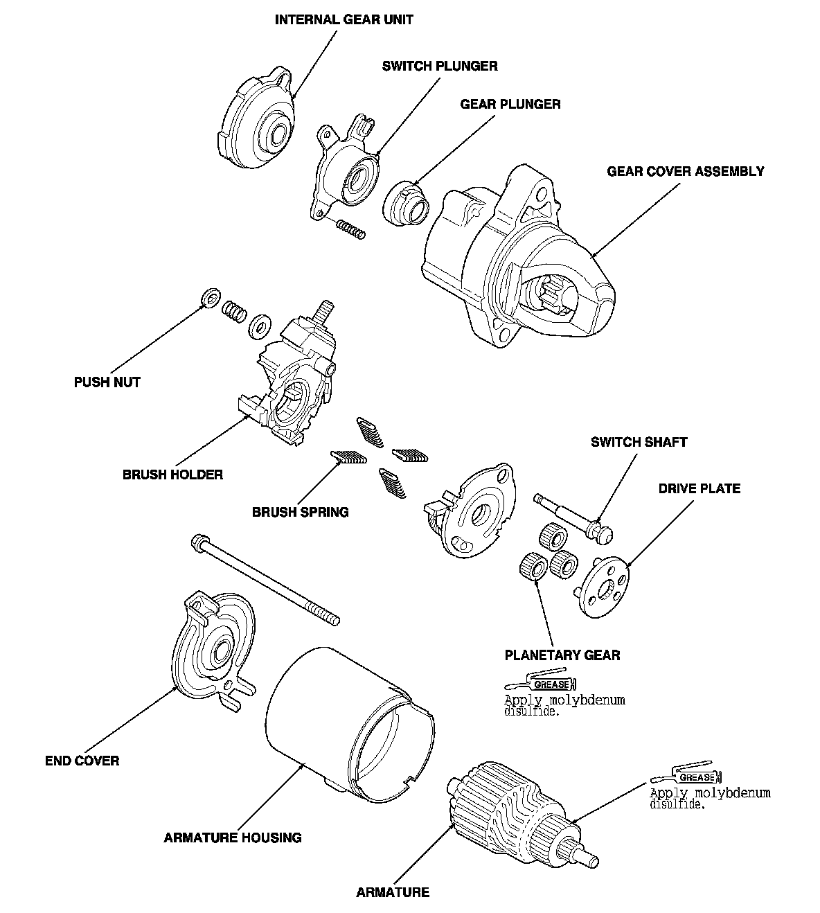 2. Disassemble the starter as shown at the beginning of this procedure.