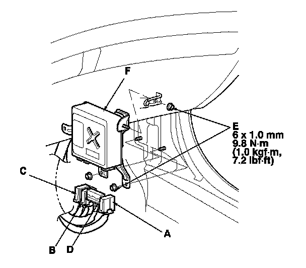 4. Disconnect EPS control unit connector A (2P), connector B (2P), connector C (2P), and connector D (28P).
