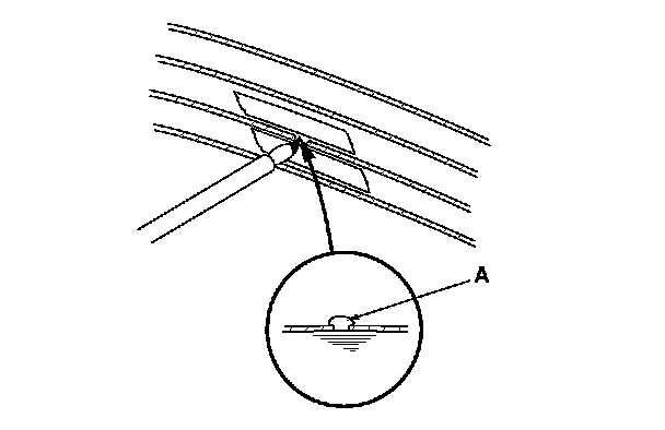 3. Using a small brush, apply a heavy coat of silver conductive paint (commercially available) (A) extending about 1/8 in. (3.1 mm) on both sides of the break. Allow 25 minutes to dry.