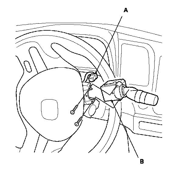 3. Disconnect the dashboard wire harness 8P connector (A) from the wiper/washer switch (B).