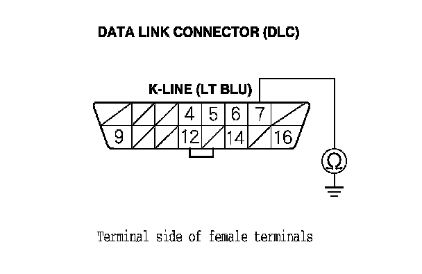 17. Check for continuity between DLC terminal No. 7 and body ground.