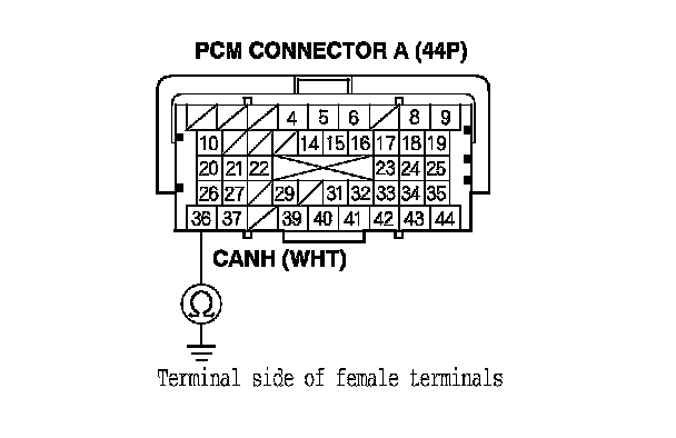 32. Check for continuity between PCM connector terminal A36 and body ground.