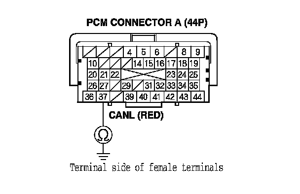 34. Check for continuity between PCM connector terminal A37 and body ground.