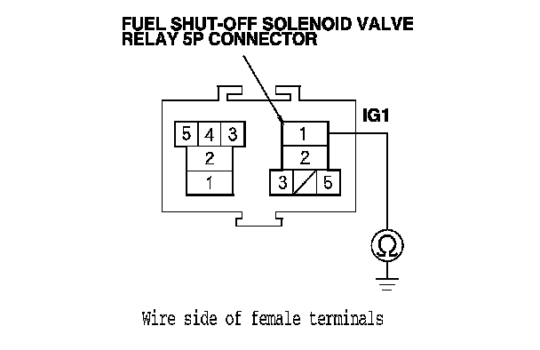 50. Check for continuity between the fuel shut-off solenoid valve relay 5P connector terminal No. 1 and body ground.