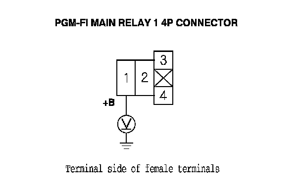 64. Measure the voltage between PGM-FI main relay 1 4P connector terminal No. 1 and body ground.