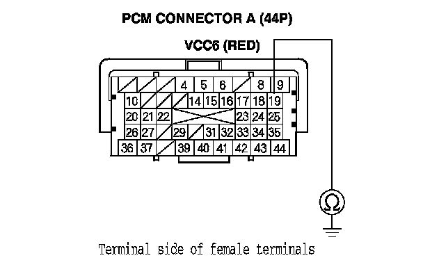 57. Measure the voltage between PCM connector terminal A6 and body ground.