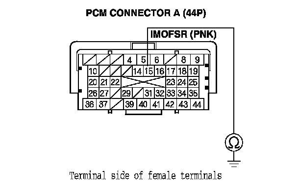7. Check for continuity between body ground and PCM connector terminal A15.