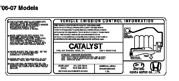 THIS VEHICLE CONFORMS TO U.S. EPA TIER 2 BIN 2 AND CFV/ILEV ULEV REGULATIONS APPLICABLE TO 2006 MODEL YEAR NEW PASSENGER CARS AND CALIFORNIA REGULATIONS APPLICABLE TO 2006 MODEL YEAR NEW LEV II SULEV PASSENGER CARS. THIS VEHICLE HAS ALSO BEEN CERTIFIED AS AN AT-PZEV BY CALIFORNIA AIR RESOURCES BOARD. THIS VEHICLE IS CERTIFIED TO OPERATE ON COMPRESSED NATURAL GAS.