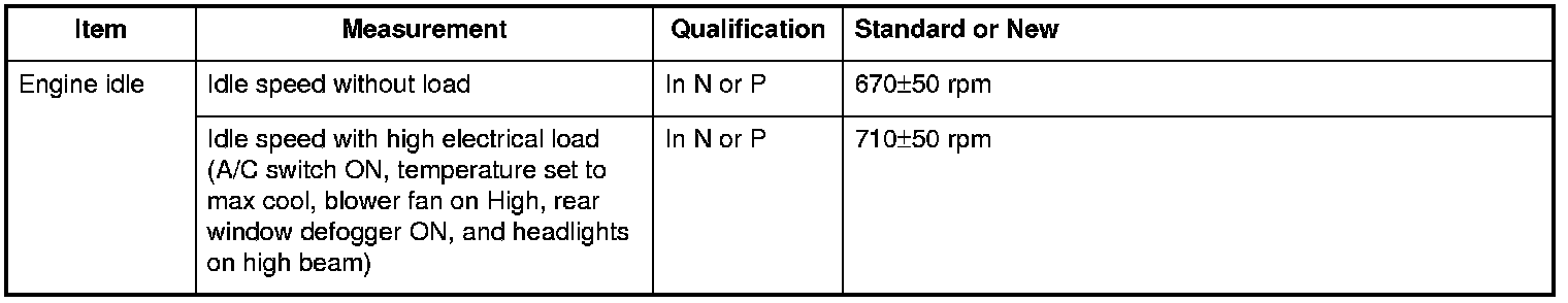 Engine idle Specifications